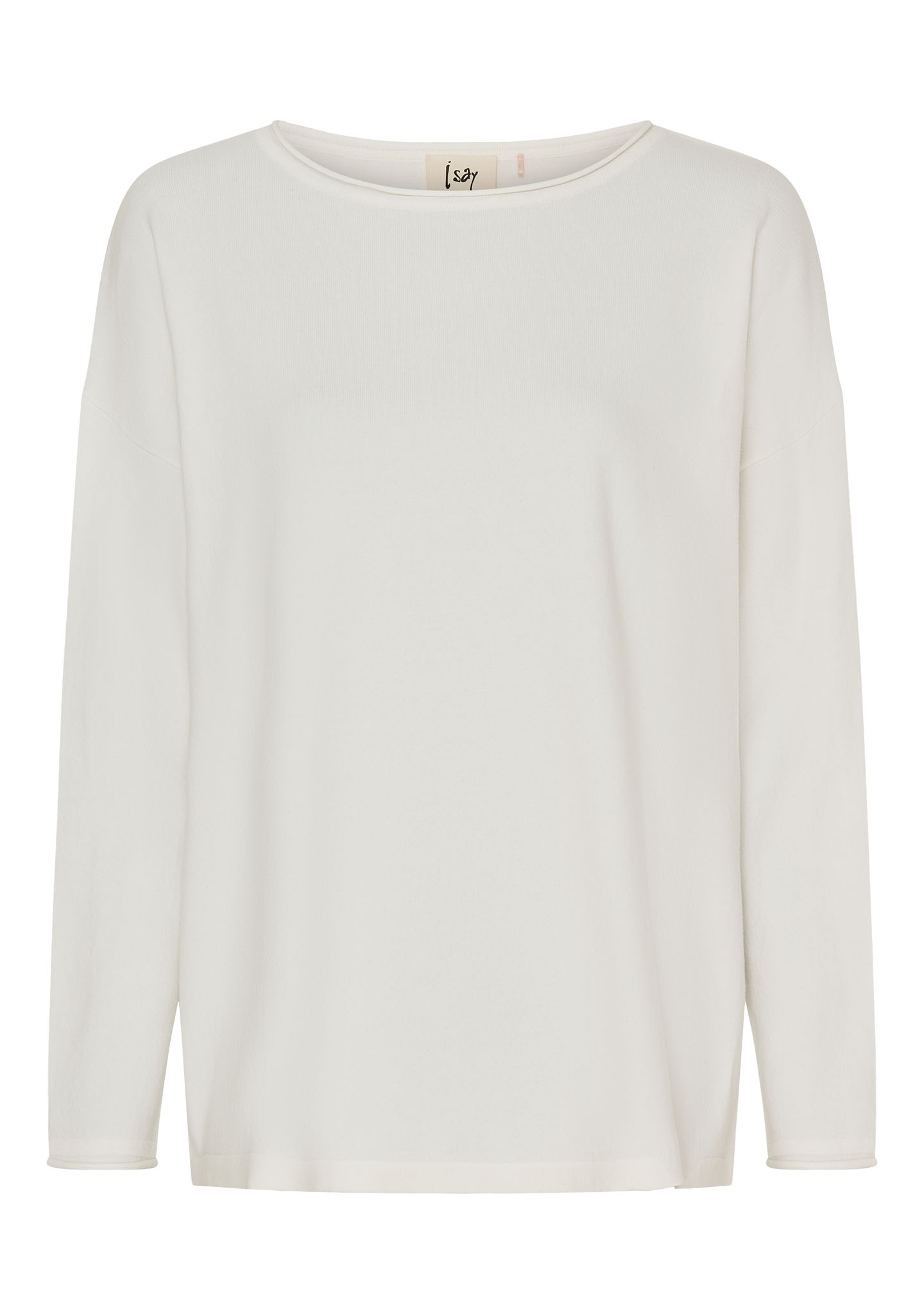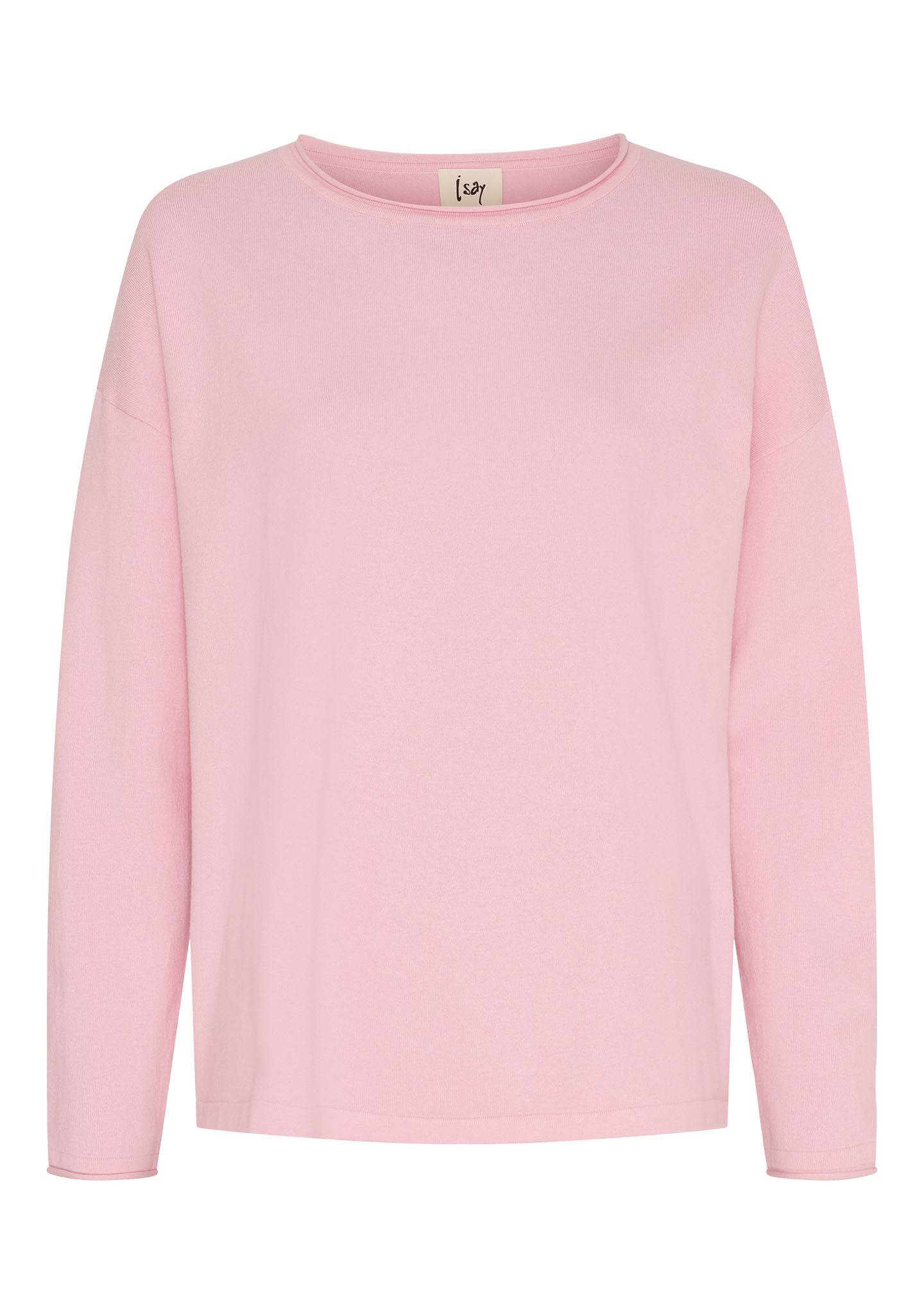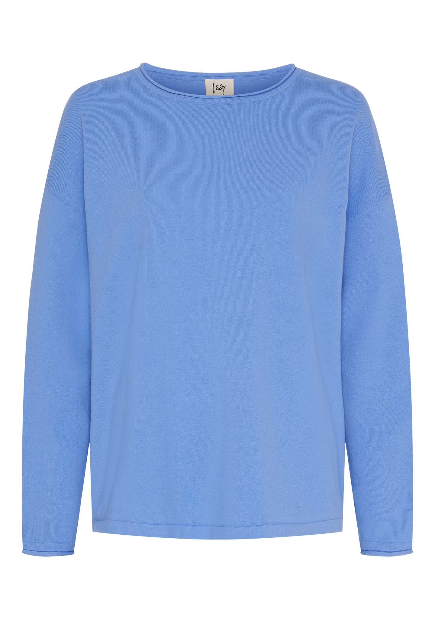 Frigga stickad tröja från Isay är en oversized tröja med rund hals i mjuk bomullsblandning. Finns i vårens färger: offwhite, skyblue, fresh green och pink.