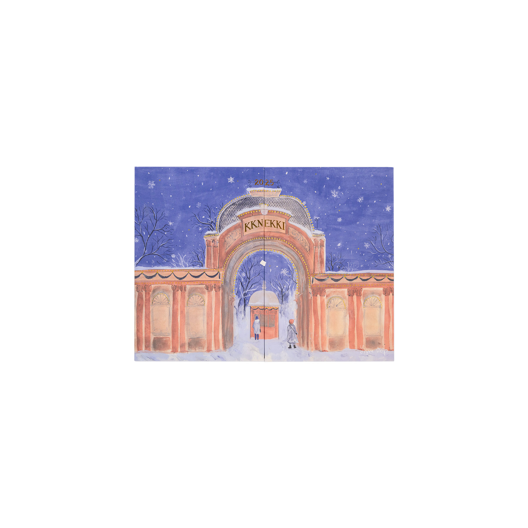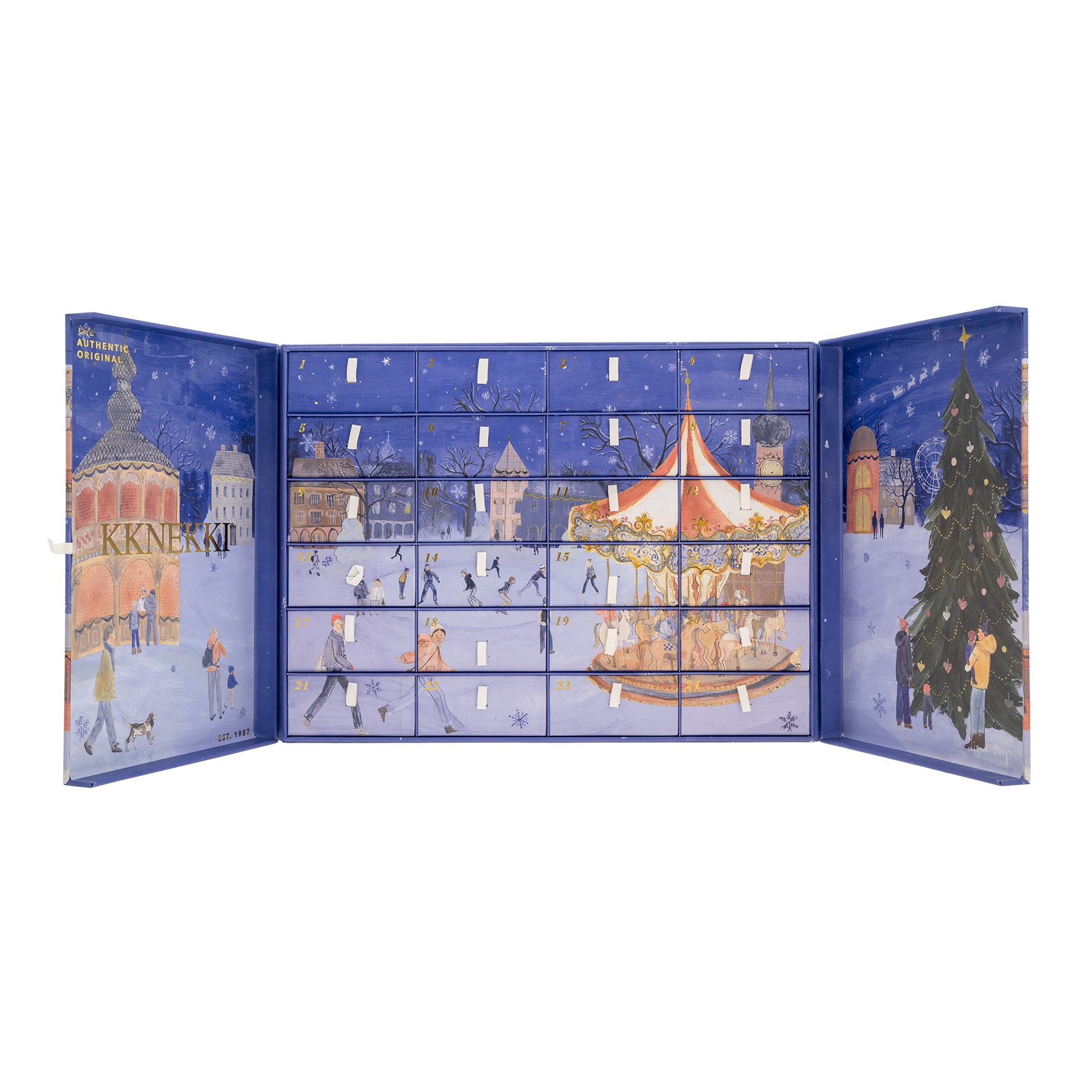 Limiterad adventskalender från Bon Dep med sagolika illustrationer av Signe Torp. Kalendern är utformad med 24 luckor och innehåller 41 stycken helt nya färger av den populära hårsnodden Kknekki i blandade färger och varianter från SS26-kollektionen. Dessa nya färger finns inte att köpa någon annanstans förrän våren 2026.