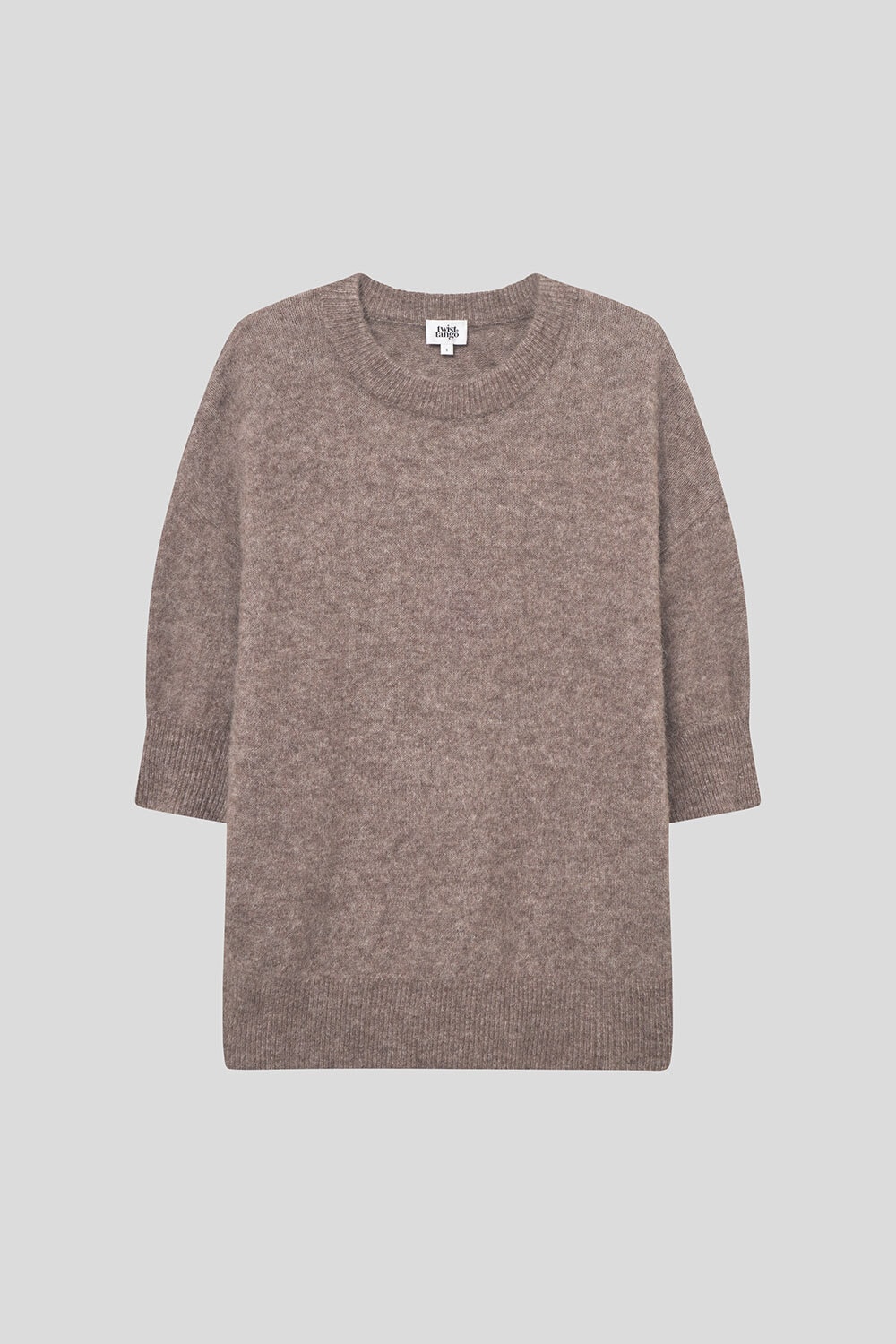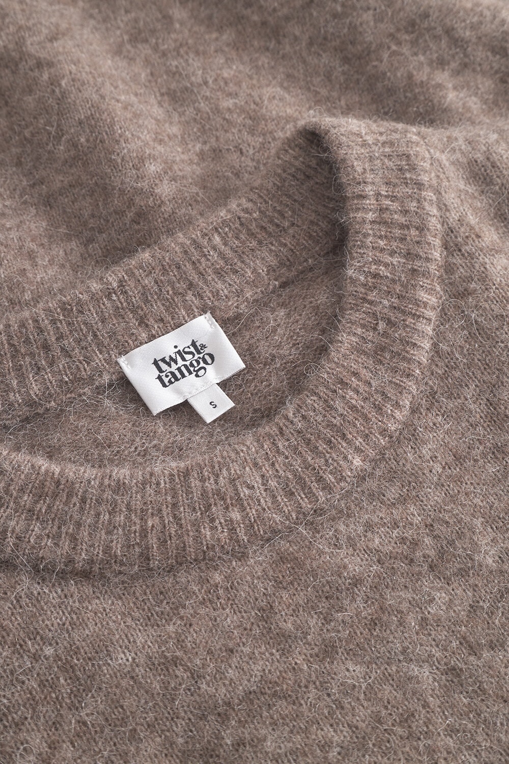 En stickad tröja i en varm Dark Truffle-nyans, designad med en feminin touch. Tröjan har en rund halsringning och mjuka puffärmar som ger en diskret volym och en elegant silhuett. Den ribbade strukturen i ärmslut och fåll ger en väldefinierad passform utan att tumma på komforten. Färgen och snittet gör den till en perfekt match med Israa stickad kjol – för en tidlös och stilren outfit med det lilla extra.